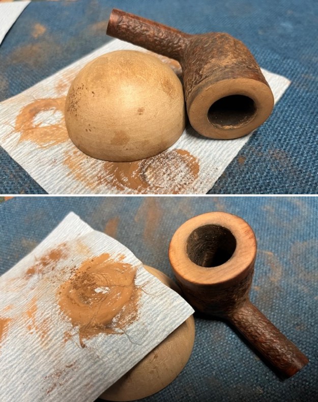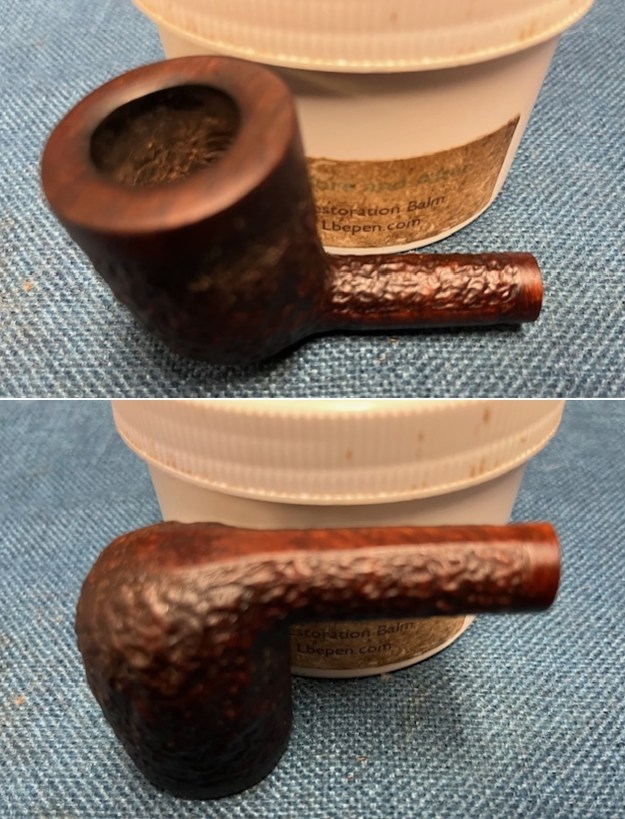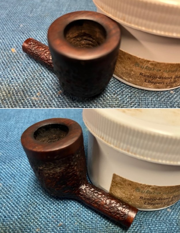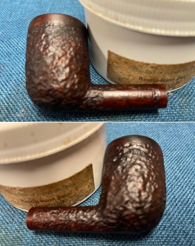 I dried it off with a soft cloth and hand buffed it. The finish definitely looked better. I would need to darken the stain on the rusticated portion to match the look of the similar pipe I saw on Pipephil’s site, but it was definitely and improvement. The rim top was smooth and symmetrical and the rustication was very clean.