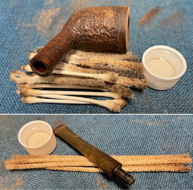 I cleaned out the inside of the pipe – the shank, airway in the mortise and the stem with pipe cleaners, cotton swabs and alcohol. It was quite dirty.