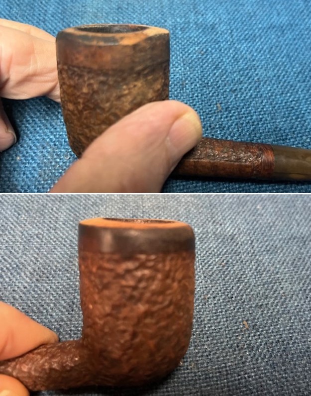 The seller included some closer photos of the rim top to show the damage I mentioned above. It was in rough shape. The bowl gives the feeling that is a Dublin however, it is not. It is a well proportioned Billiard. The damage to the rim top is clear in the photo but when it arrived it was worse in some ways and better in others. The stamping on the underside of the shank is clear and readable as noted above.