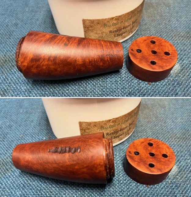 I took a photo of the stamping on the side of the shank on the left side of the briar ahead of the stem. I took the stem off the shank and took a photo of the parts to give a sense of the beauty of the pipe.
