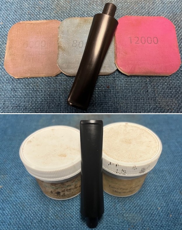 I sanded the stem with 320-3500 grit sanding pads to remove the tooth chatter and the marks in the stem surface. I wiped it down after each sanding pad with an Obsidian Oil soaked cloth. It began to look very good.