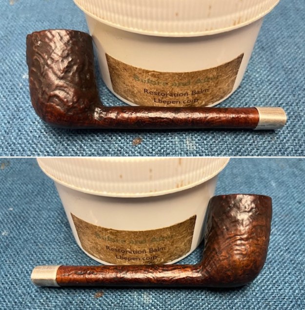 I worked some Before & After Restoration Balm into the surface of the briar with my finger tips and a shoe brush to work it into the sandblast. The product is incredible and the way it brings the grain to the fore is unique. It works to clean, protect and invigorate the wood.