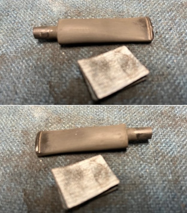 I sanded the stem with 320-1500 grit 2×2 inch sanding pads. I wiped the stem down after each sanding pad with an Obsidian Oil Cloth to remove the sanding dust. It began to look very good.