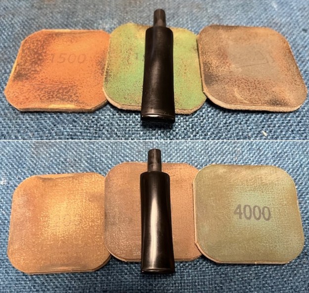 I polished the stem with micromesh sanding pads – dry sanding with 1500-12000 grit pads. I wiped the stem down after each sanding pad with an Obsidian Oil Cloth. The stem began to take on a rich shine.