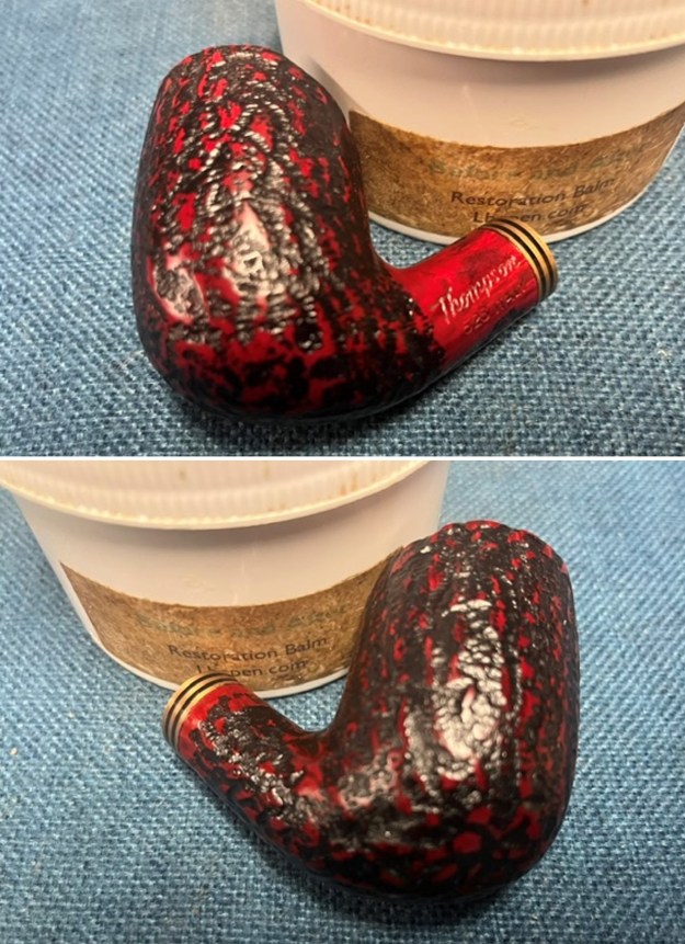 I rubbed the bowl down with Before & After Restoration Balm. I worked it into the surface of the bowl sides and shank with my fingertips. The product works to clean, enliven and protect the briar. I let the balm sit for a little while and then buffed with a cotton cloth to raise the shine.