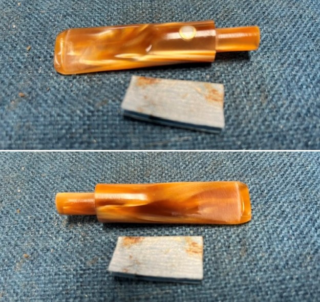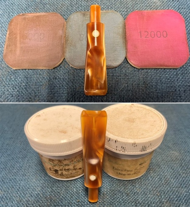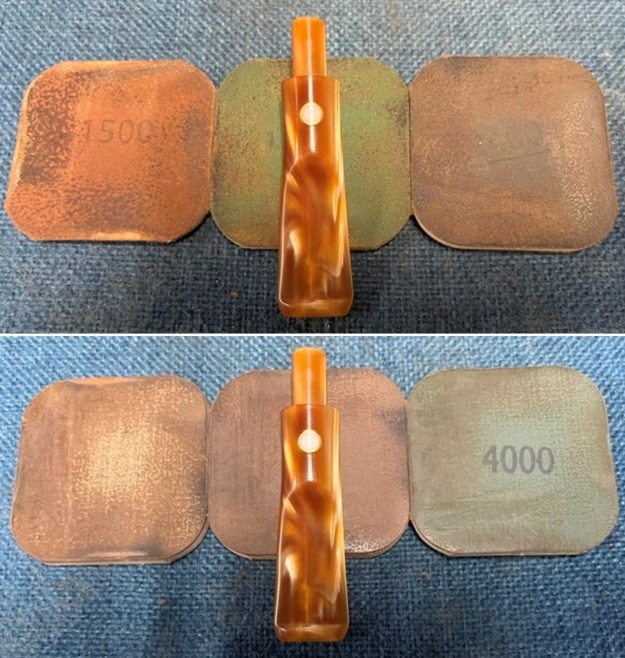 I sanded the stem with 320-3500 grit 2×2-inch sanding pads to smooth out the tooth chatter. The pipe stem was looking very good.