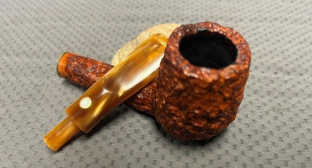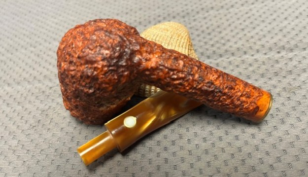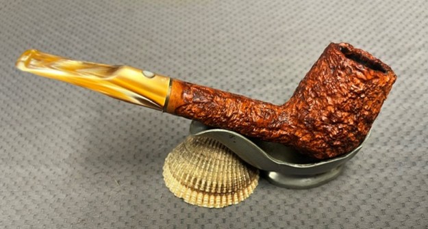 As usual at this point in the restoration process I am excited to be on the homestretch. I look forward to the final look when it is put back together, polished and waxed. I put the Mauro Armellini Naturale Italy Rusticated Billiard with a variegated golden saddle stem back together. I polished the bowl and the stem with Blue Diamond to polish out the scratches in the briar and the acrylic. I gave the bowl multiple coats of Conservator’s Wax and the stem multiple coats of carnauba wax. I buffed the pipe with a clean buffing pad to raise the shine. I hand buffed it with a microfiber cloth to deepen the shine. The pipe polished up pretty nicely. The rustication depths really pops with the wax and polish. The shiny acrylic golden saddle stem is a beautiful contrast to the various browns of the bowl. This Mauro Armellini Naturale Italy Rusticated Billiard was a great pipe to spruce up. It is a very comfortable pipe to hold in the hand. The finished pipe is shown in the photos below. The dimensions of the pipe are Length: 5 ½ inches, Height: 1 ¾ inches, Outside diameter of the bowl: 1 ¼ inches, Chamber diameter: ¾ of an inch. The weight of the pipe is 38 grams/1.34 ounces. This pipe will be going on the Italian Pipe Maker section of the rebornpipes store if you are interested in adding it to your collection. Thanks for reading this blog and my reflections on the pipe while I worked on it. This is an interesting estate to bring back to life.