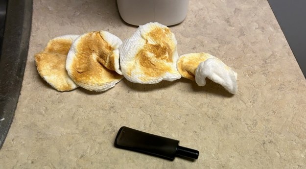 I used isopropyl alcohol on a few cotton rounds and wiped down the stem to provide an initial cleaning of filth before moving on to the next steps. The primary cleaning came next. I disinfected the inside of the stem with both pipe cleaners and cotton swabs dipped in lemon-infused 99% isopropyl alcohol. I scrubbed thoroughly to make sure the interior was very clean.