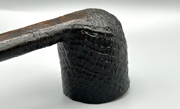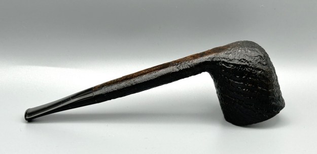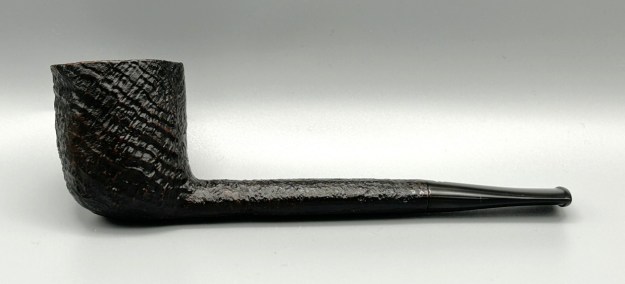 It’s a handsome Hilson Avanti sandblasted Canadian. Normally, when I think of Hilson, my mind meanders to resin (or ‘pipenite’, as they called it) stylings from the Fantasia line – but not today! This is a pure briar pipe, with a lovely vulcanite stem. The pipe conveys a feeling of confidence: the thick, briar walls, the rugged blast, etc. It’s just a solid pipe. I acquired it a while back, but I don’t know the pipe’s individual history. It is in lovely condition and doesn’t appear to have been smoked much.