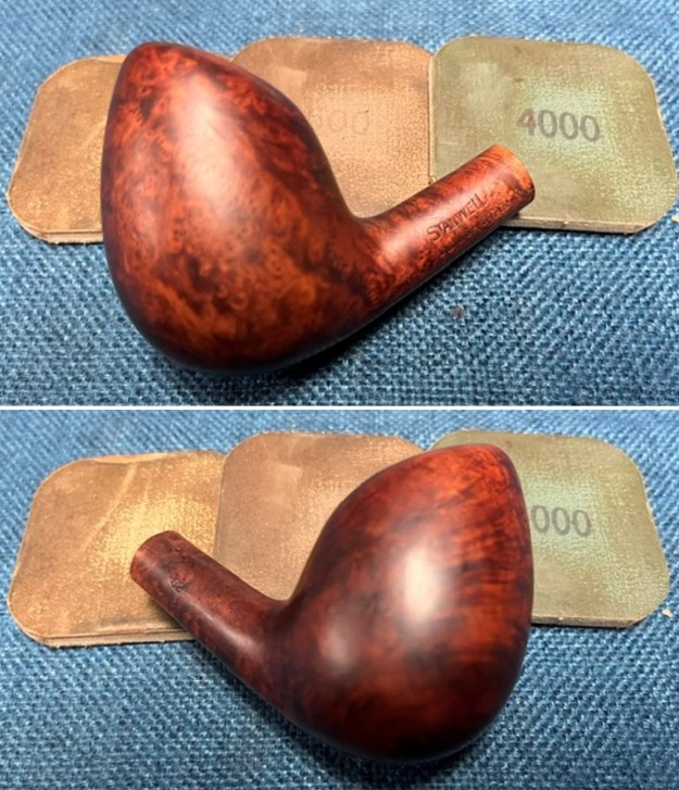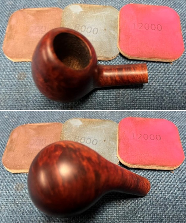 I polished the briar with micromesh sanding pads – dry sanding with 1500-12000 grit pads and wiping it down after each pad with a damp cloth.