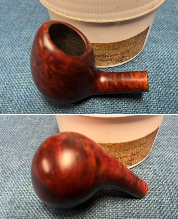 I rubbed the bowl and shank down with Before & After Restoration Balm. I worked it into the surface of the bowl sides and shank with my fingertips. The product works to clean, enliven and protect the briar. I let the balm sit for 15 minutes and then buffed with a cotton cloth to raise the shine.