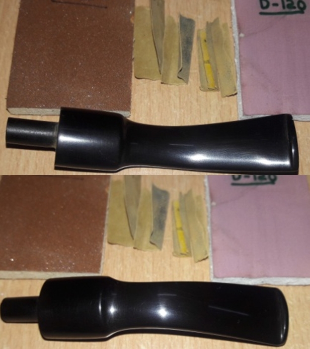 I polished the stem with micromesh sanding pads – dry sanding with 1500-12000 grit sanding pads. I wiped them down after each sanding pad with a cloth containing some Obsidian Oil.