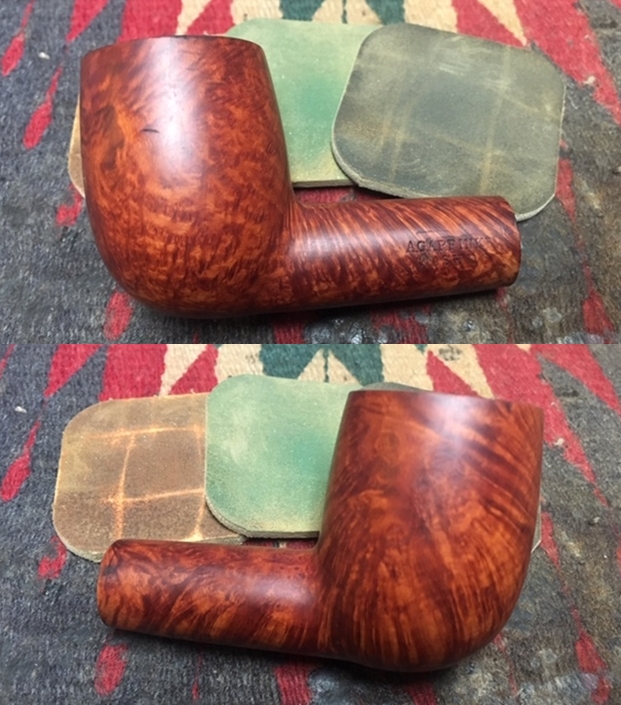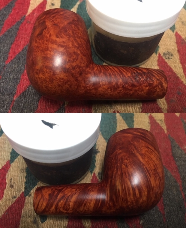Jeff had cleaned up the pipe with his usual thoroughness. He reamed the pipe with a PipNet Pipe Reamer and cleaned up the remnants with a Savinelli Fitsall Pipe Knife. He scrubbed the bowl with undiluted Murphy’s Oil Soap with a tooth brush. He rinsed it under running warm water to remove the soap and grime. He cleaned out the inside of the shank and the airway in the stem with alcohol, cotton swabs and pipe cleaners. He soaked the stem in Before & After Deoxidizer and rinsed it off with warm water. Somewhere along the way as it sat here it picked up some stickiness on the top of the stem that looks a lot like what is left behind by a gummed label. I took photos of the pipe 3 years later when I finally got around to working on it. As you can see it is another beautiful looking pipe.