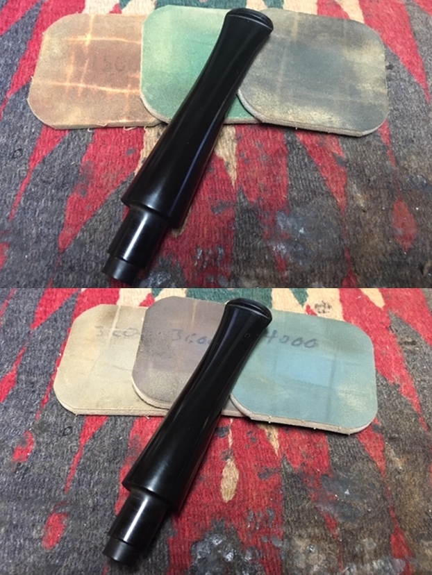 I sanded it further with 320-3500 grit 2×2 inch sanding pads, I wiped it down with a damp cloth to remove the grit and debris on the stem surface. I gave it a coat of Obsidian Oil to protect the surface at this point.