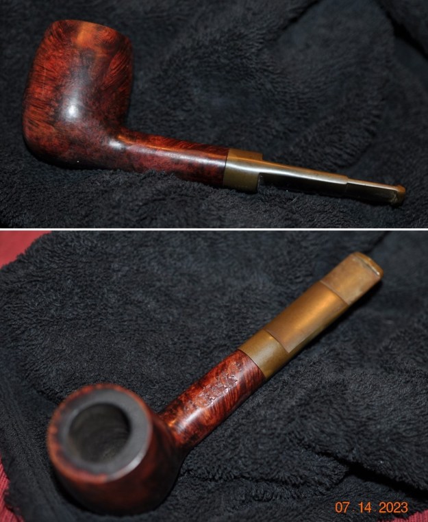 I always check to make sure that the clean up work did not damage the stamping on the shank sides in any way. It is in excellent condition and is very clear and readable. I love just looking at the lay of the pipe and the proportion of the hand made pipes. I like to remove the stem from the shank to get a sense of what was in the mind of the pipe maker when he crafted the pipe. The photo shows its beauty in flow and shape.