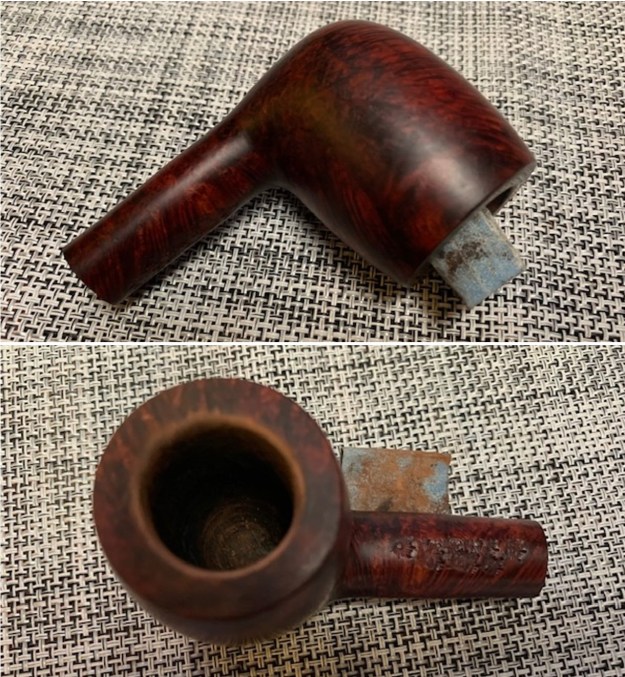 Once again I want to take you through my process of working on each pipe that we purchase. Jeff has set up a spread sheet to track where the pipe came from, the date of purchase and what we paid for it so that we know what we have invested in the pipe before we even work on it. This takes a lot of the guess work out of the process. This particular pipe was purchased on 10/20/2022 from an Antique Store in Vancouver, Washington, USA. I also want you to understand why we take the photos we do. If you have followed for a while then you will see the familiar pattern of the photos in the before and midstream process of working on a pipe. It is not accidental as the photos have been taken to help me assess the pipe Jeff sees before he starts his clean up work. We do this to record the condition that the pipe when received it and assess the work needed to be done. When I look at these photos this is what I see.