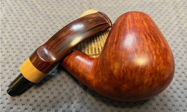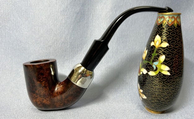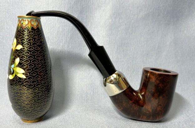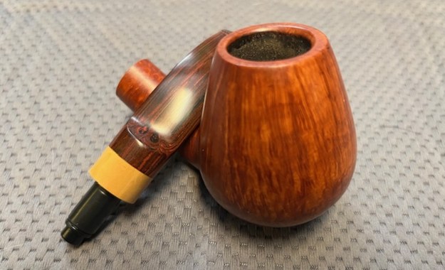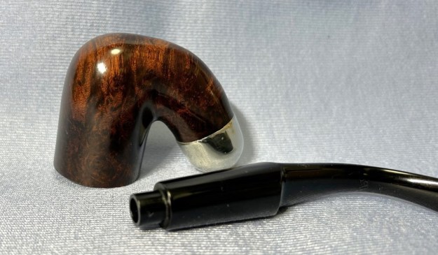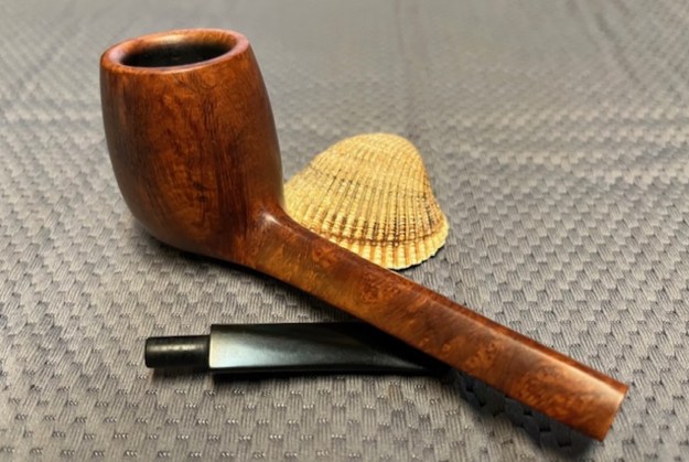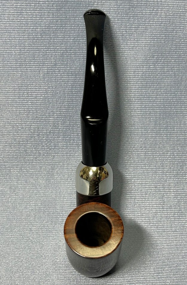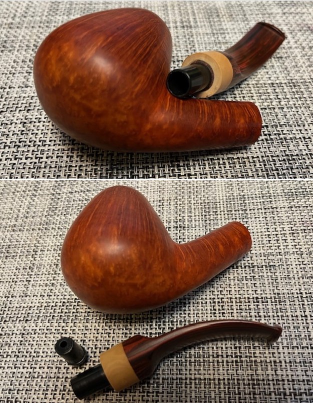 The pipe is very light and the bowl can be easily replaced, if necessary. It is connected to the tip by two fixed side rods and a removable condenser-radiation tube that can be emptied instantly. This radiation tube contains a newly-developed, electrostatic spiral filter which has many surfaces to trap tobacco tar and condensation. This coil, coated with an insulating aluminum oxide film, suspended by two insulating joints, causes an electrostatic effect, resulting in the quick condensation of nicotine and other alkaloids. The smoke is cooled, to the satisfaction of the smoker and those around him. This newly designed and produced pipe is very healthy.Anyway, all in all, a fascinating piece of pipe history and design. It is bound to be a great smoker and it is available now. If you are interested in acquiring it for your collection, please have a look in the French pipe Section of the store here on Steve’s website. You can also email me directly at kenneth@knightsofthepipe.com. The approximate dimensions of the pipe are as follows: length 5⅔ in. (144 mm); height 1⅝ in. (40 mm); bowl diameter 1½ in. (38 mm); chamber diameter ¾ in. (19 mm). The weight of the pipe is 1¼ oz. (39 g). If you are interested in more of my work, please follow me here on Steve’s website or send me an email. Thank you very much for reading and, as always, I welcome and encourage your comments.