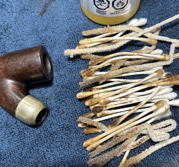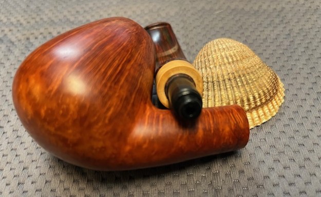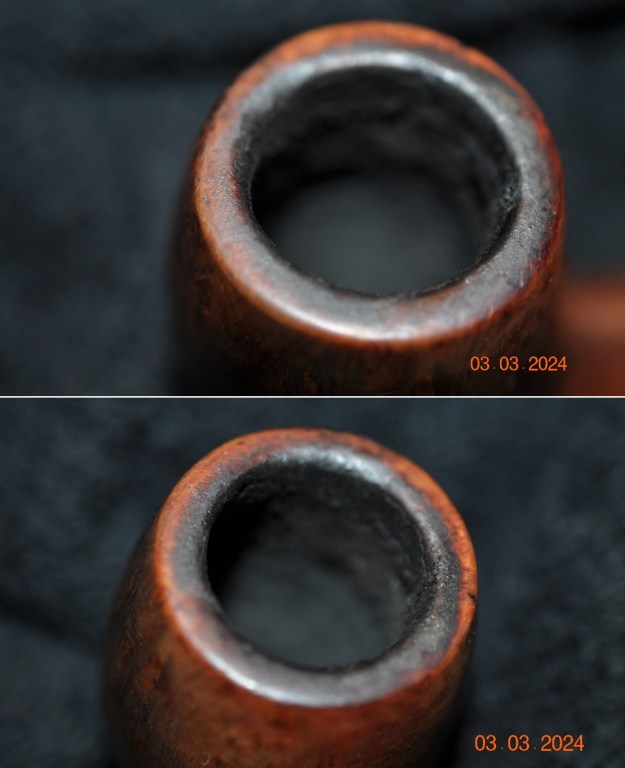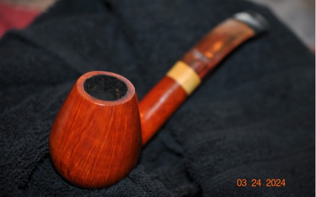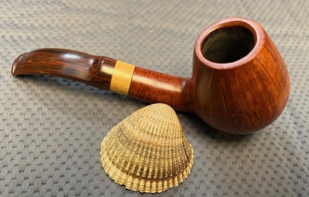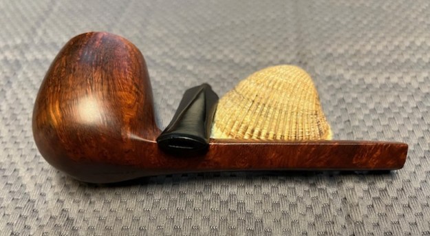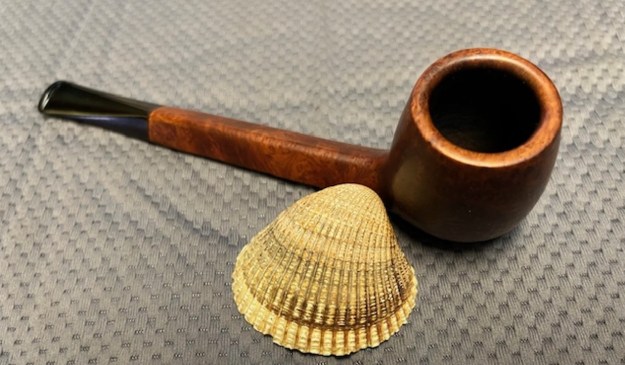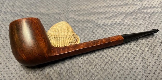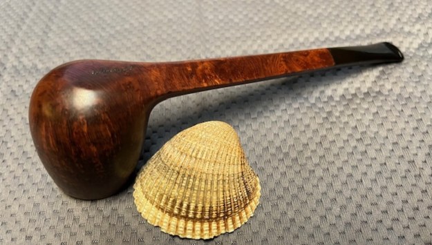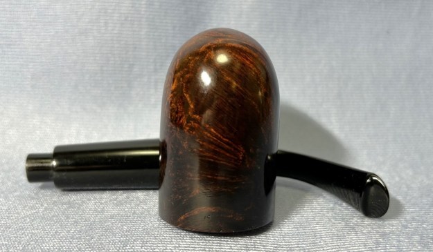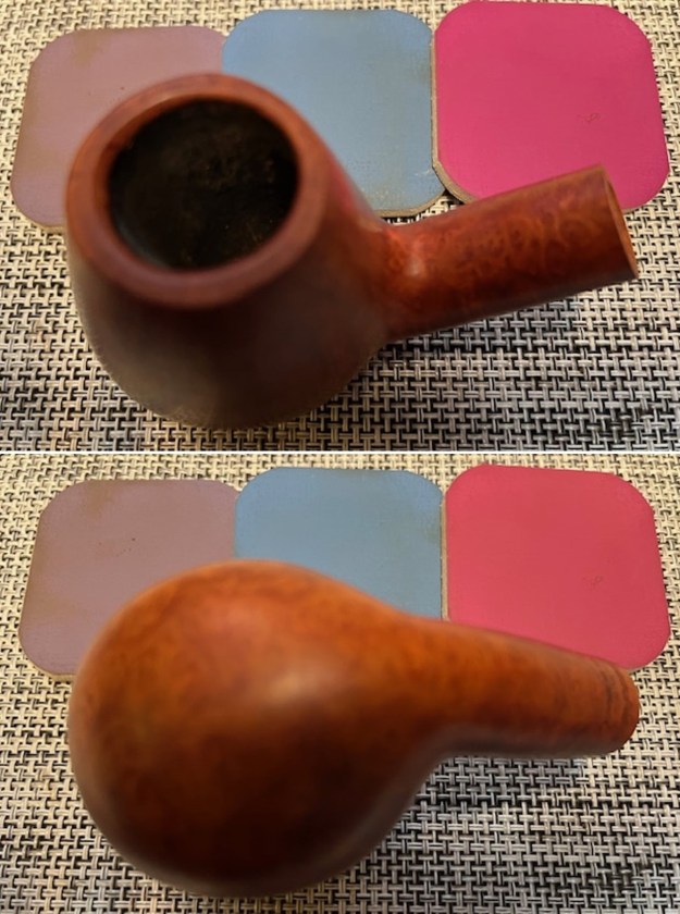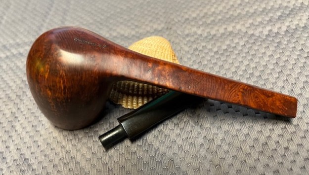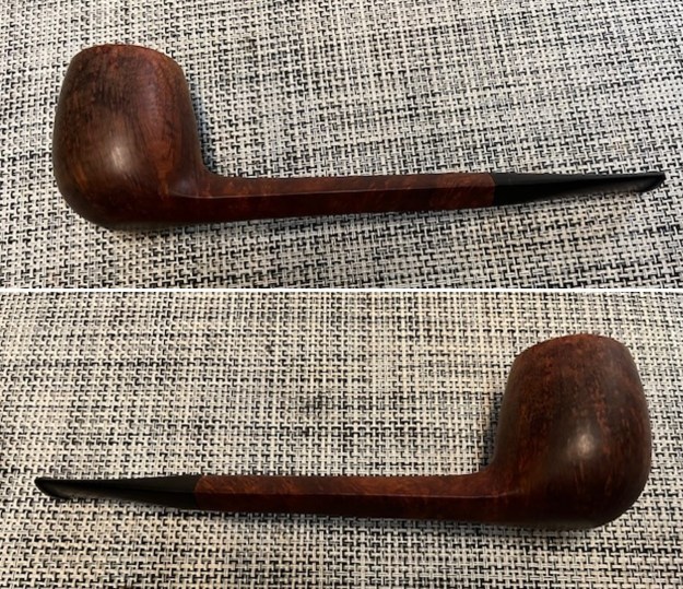 Kaywoodie identifies the 5189B shape as a “Squat Heavy Bulldog”, and apt shape name for this chunky pipe that weighs in at 55 grams. When I told my wife how old it was, she reminded me of the Potomac River flood of 1936, that impacted her family in nearby West Virginia (we live in Maryland, about two miles from the river). Did someone who was worried about their home chew on this pipe stem? Or as World War II was starting? Perhaps in joy hearing the news that the war had ended. I wish these pipes could talk.