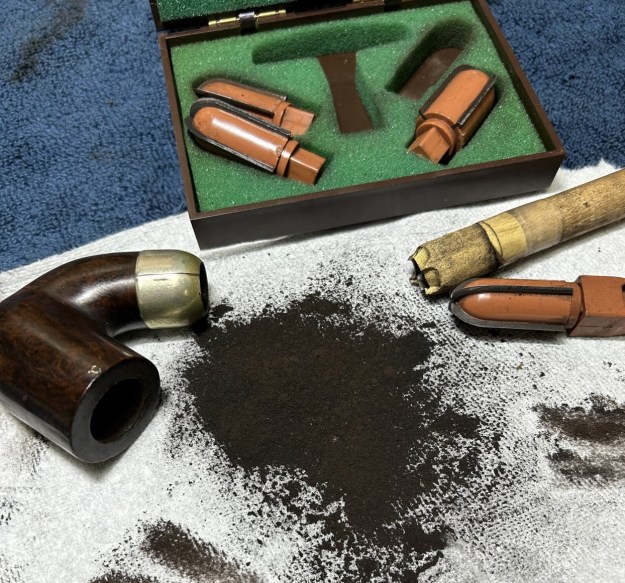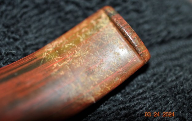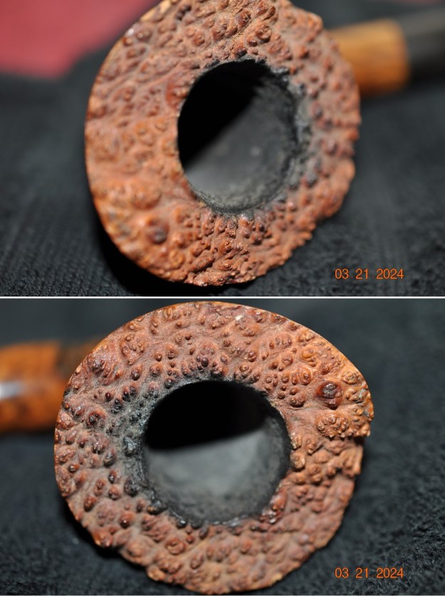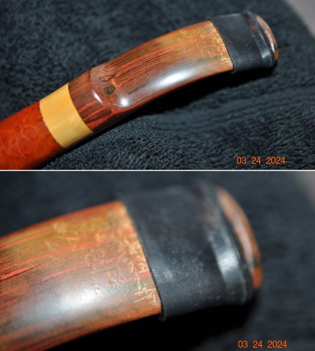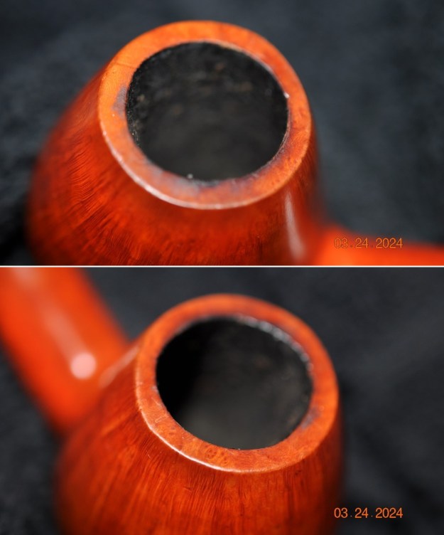 It has been four or five years since I last had a vintage Kaywoodie on my workbench. This one caught my eye on eBay and the seller confirmed the stinger was intact, and had four holes. I thought it was made before WWII, and after evaluating the pipe on my bench, I believe the pipe was made between 1936 and 1938. Information and documents gleaned from several Kaywoodie collector site documents I saved over the years were very helpful. Unfortunately, the Kaywoodie forum is no longer active. We used to be able to contact the owner of Kaywoodie and ask the owner himself, Bill Feurbach. (he was ill, and hopefully, recovering) The stamping was worn, but visible just enough to help me identify the era it would have been produced. The details that helped me were: