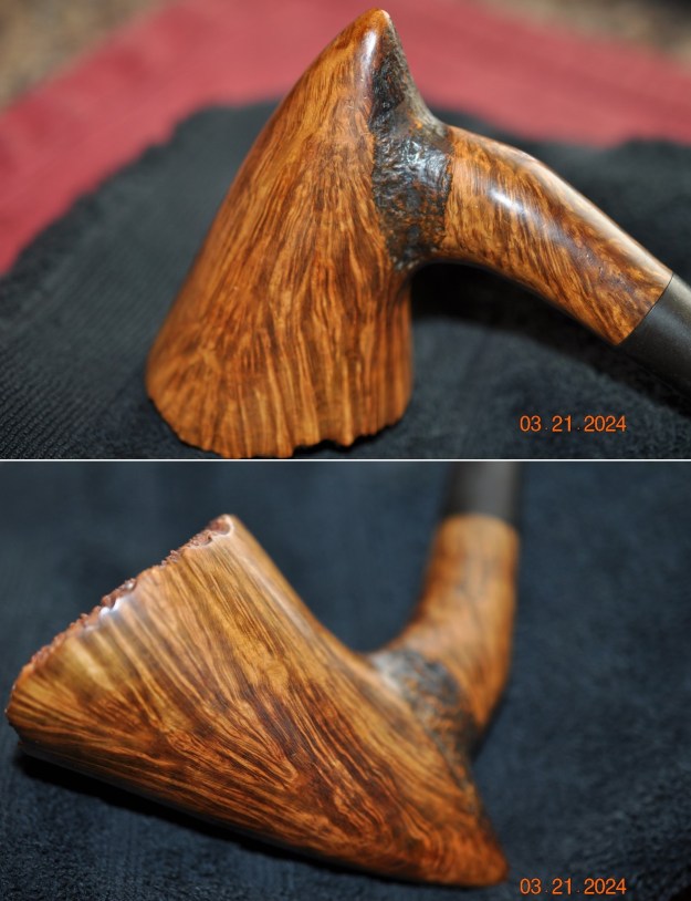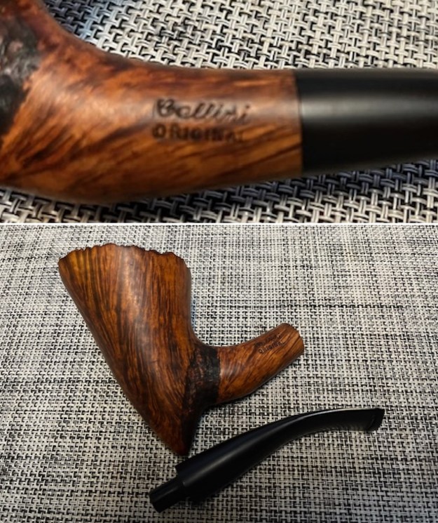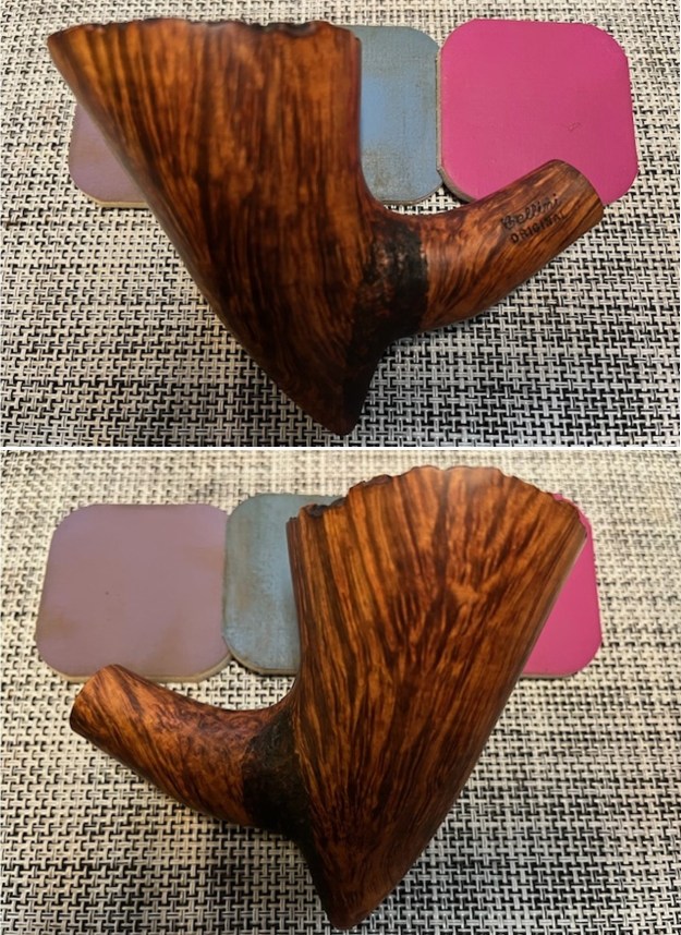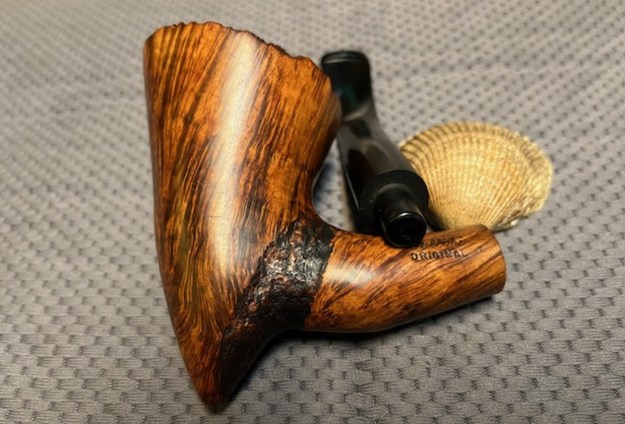 Combining the information above I knew that the classic shaped Canadian by Becker-Musico was a collaboration of Paolo Becker and Massimo Musico. It was made in their shop in Rome. The stamp is 5 Years – 3 and tells us that the sandblast pipes which started in 1995 (5 Years) and added 3 years to that for a date of 1998.