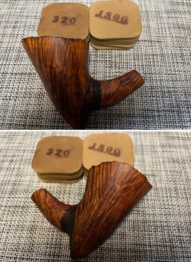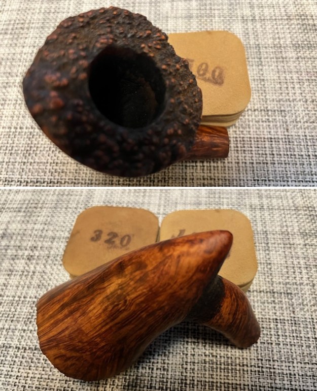 From that information I knew that the pipe that I was working on was made before 2008 and could well have been made by Tonni Nielsen. The C stamping told me it was a fairly high grade pipe – fourth grade from the top AX grade. That makes sense when I look at the grain and also the way the pipe maker cut the pipe to maximize the lay of the grain on the bowl. Now it was time to work on the pipe on my end.