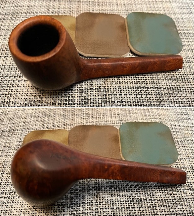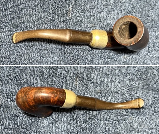 This is awfully helpful in dating this pipe. I can comfortably say that this pipe dates from 1945 through 1947, that is to say, just short of 80 years (at the time of writing).