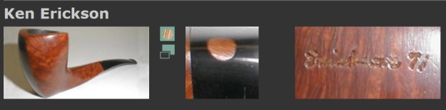 Ken Erickson began to create pipes by the end of the 1960’s and died in January of 2003. Posthumously he was honored as “Outstanding American Pipe Maker” at the West Coast Pipe and Cigar Expo in March of 2003.