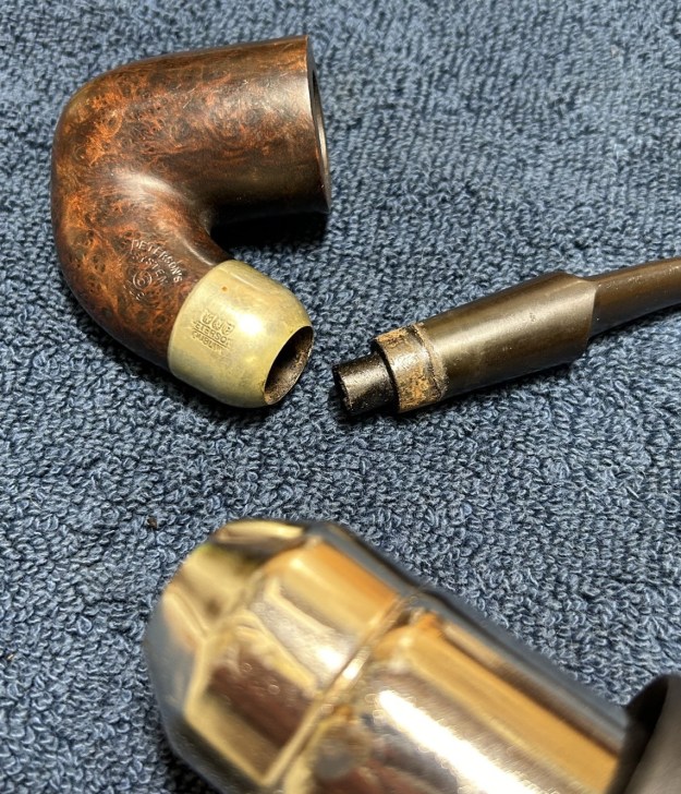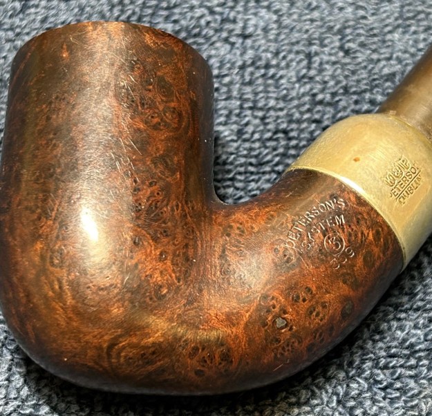 What a handsome pipe! I found this PRE-republic-period Peterson System 359 at a local antique shop and I was charmed by it right away. It’s a handsome devil and the look of it gives one a feeling of comfort. It is satisfying and comfortable in the hand – like a mug of tea. There was a lovely patina on this old timer and I really wanted to get this into the hands of Peterson lover. Let’s have a closer look. This Peterson 359 pipe has the classic “System” look: bent shape, nickel mount, and tapered, army-style stem. Of course, it also had the traditional Peterson P-lip stem. The markings on the left side of the shank are Peterson’s [over] System [over] ③ [over] 359. The underside of the shank showed Made in Ireland in a circle. The nickel mount on the shank had K&P (in shields) [over] Peterson [over] Dublin. There were no markings on the stem. The Peterson System pipes are well-storied among Peterson collectors/admirers. I took the opportunity to read the article on Pipedia, specifically about the System pipes, by Jim Lilley. There is lots of good information there and I encourage you to read it: https://pipedia.org/wiki/A_closer_look_at_the_famous_Peterson_Standard_System_Pipe.Having seen that the words “Made in Ireland” were in a circle, I knew that I was dealing with an older pipe. Precisely how old would require some elementary research. The main Pipedia article on Peterson included a few interesting lines: