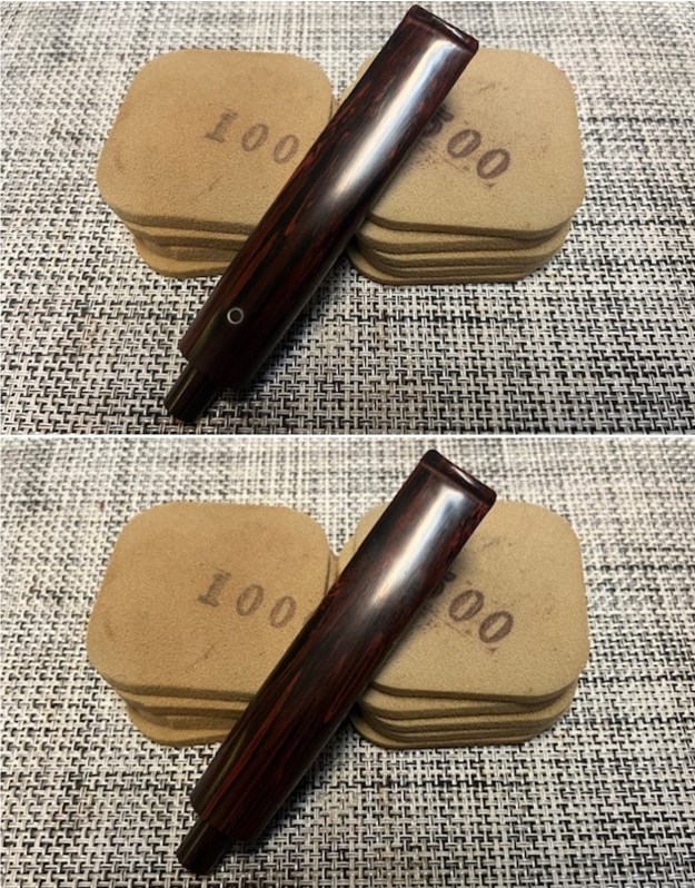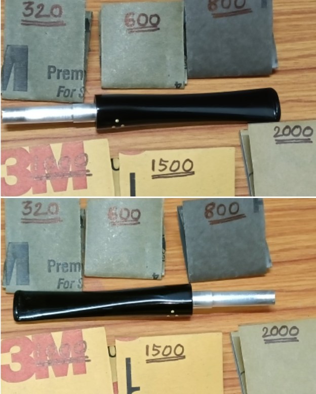 I went through the 1500 to 12000 grit micromesh pads to wet and dry sand the stem. The stem now has a nice deep shine with no traces of oxidation around the entire stem surface.