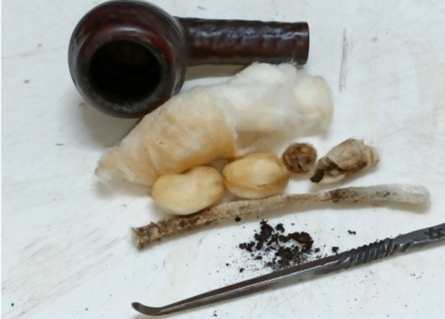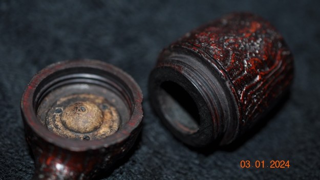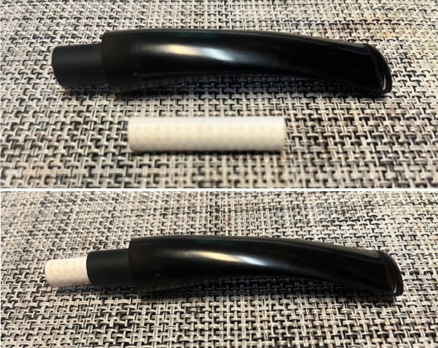 With the stem now separated from the shank, I cleaned the stem airway and surface using thin shank brushes and anti oil dish washing soap. I dried the stem airway by blowing out excess water and thereafter running a couple of pipe cleaners through the airway.