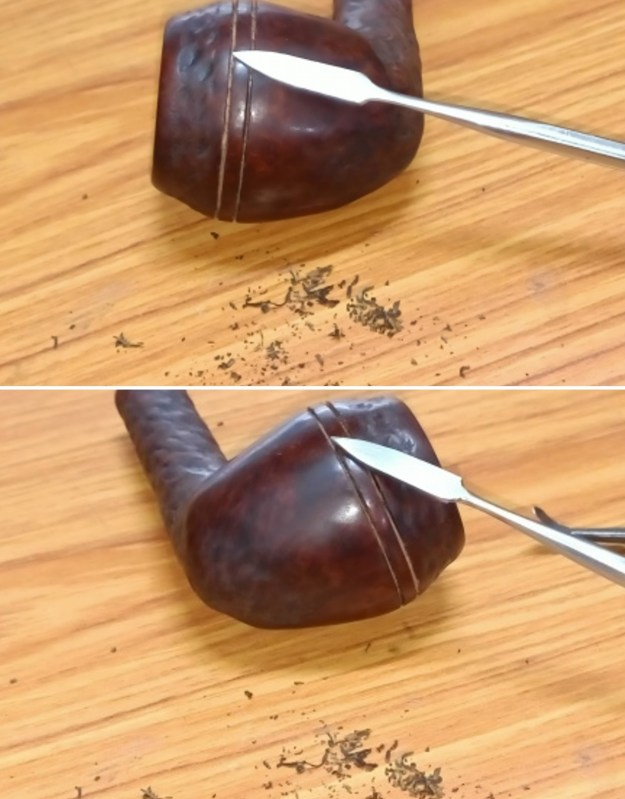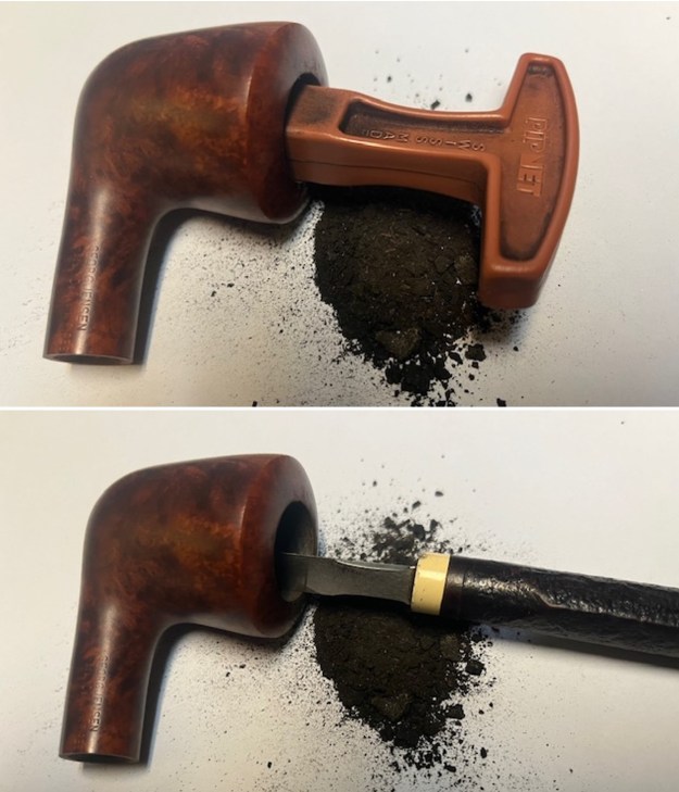 This was followed by cleaning the mortise with cue tips, pipe cleaners and a shank brush dipped in isopropyl alcohol. I scraped the walls of the mortise with my fabricated knife to remove the dried oils and tars. The heap of gunk scraped out from the mortise walls tells the sordid saga of the condition of the shank internals. Well, the shank internals are clean and will be further cleaned once the stummel exterior is cleaned using oil soap and shank brushes. However, the odours are still very strong and would need more intrusive methods of cleaning.
