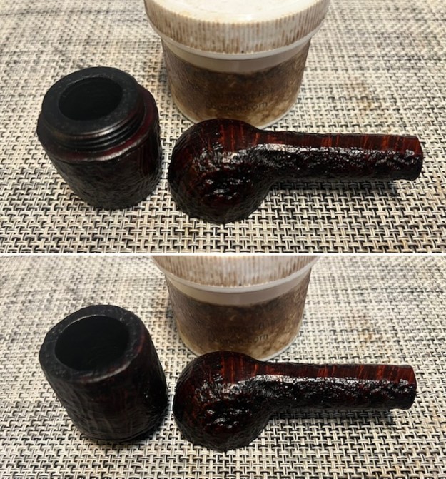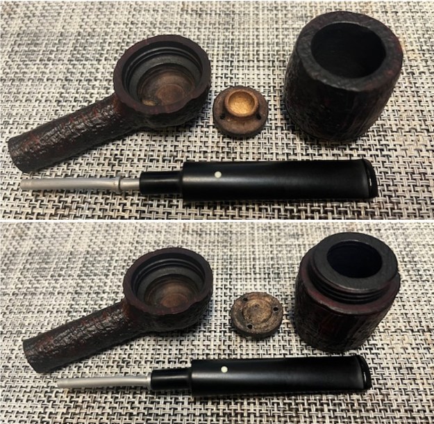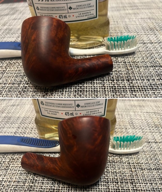 I followed up the external cleaning of the stummel with internal cleaning of the mortise and shank using anti oil soap and shank brushes. The shank internals are now clean and fresh.