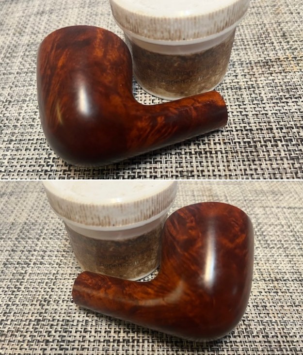 With a cotton buffing wheel that I use for carnauba wax, I applied a coat of carnauba wax and continued to work on it till the complete coat of wax had been polished out. I mounted a clean cotton cloth buffing wheel and gave the entire pipe a once over buff. I finished the restoration by giving the entire pipe a rigorous hand buffing using a microfiber cloth to raise the shine further. The finished pipe looks beautiful and is ready to be added to my collection of inherited pipes.