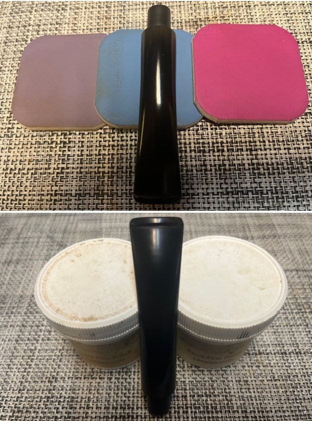 To apply the finishing touches, I mounted a cotton cloth buffing wheel on to my hand held rotary tool and applied a coat of Blue Diamond to the stummel and the stem to polish out the minor scratches.