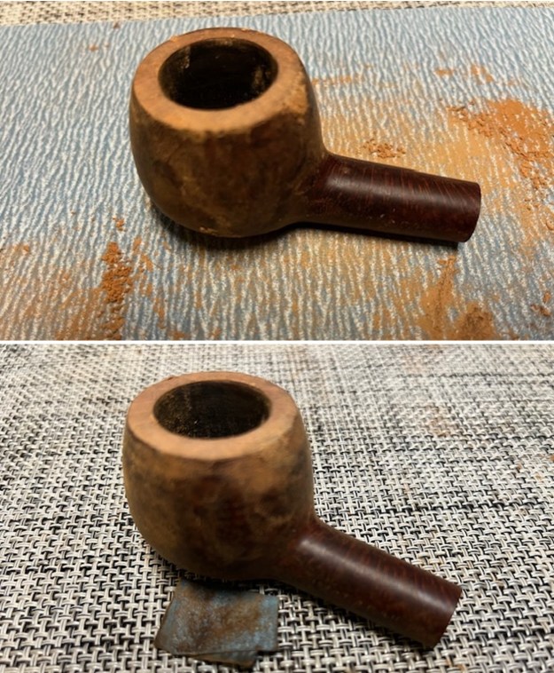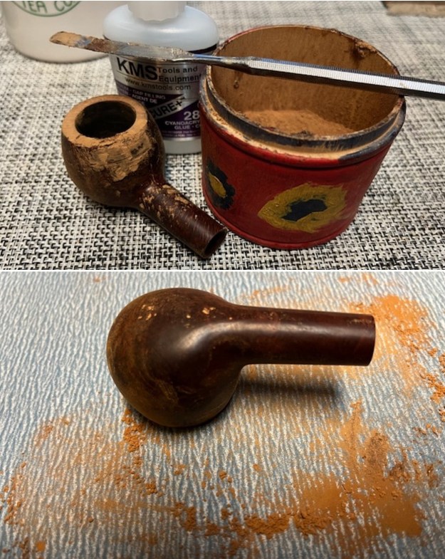 As a result, I took the opportunity to wipe down the stummel, with alcohol to remove some excess old stain, and make sure everything was clean for the repair to the crack in the shank.