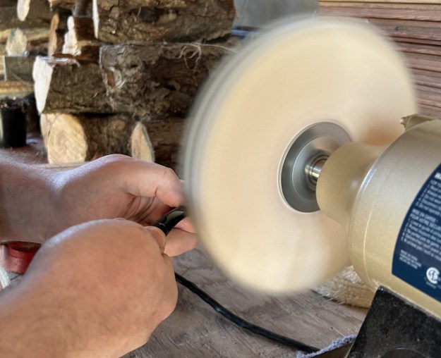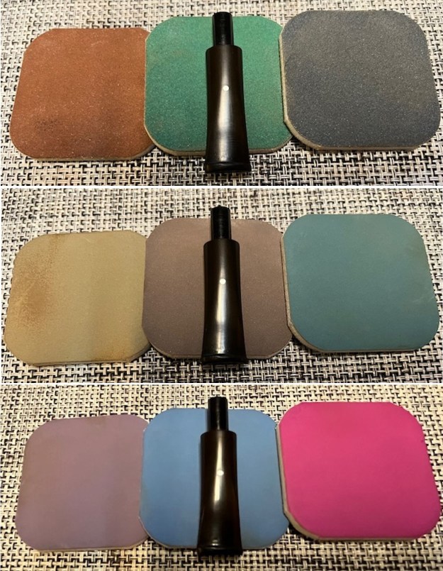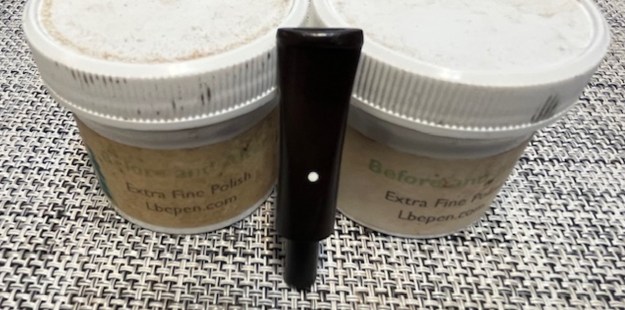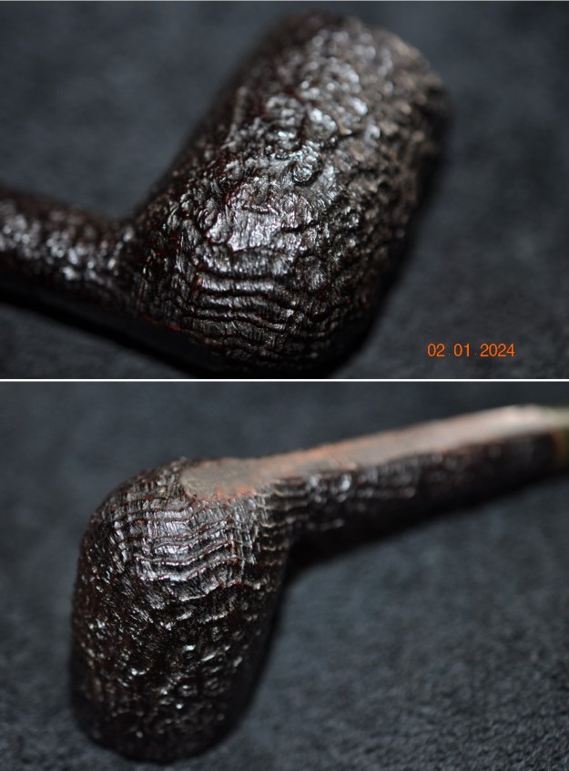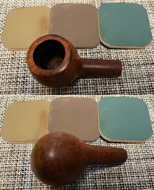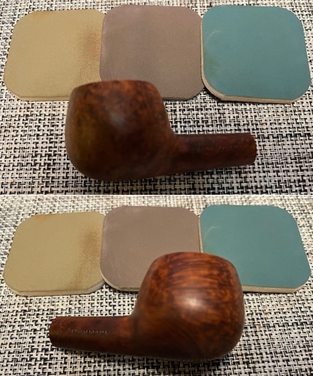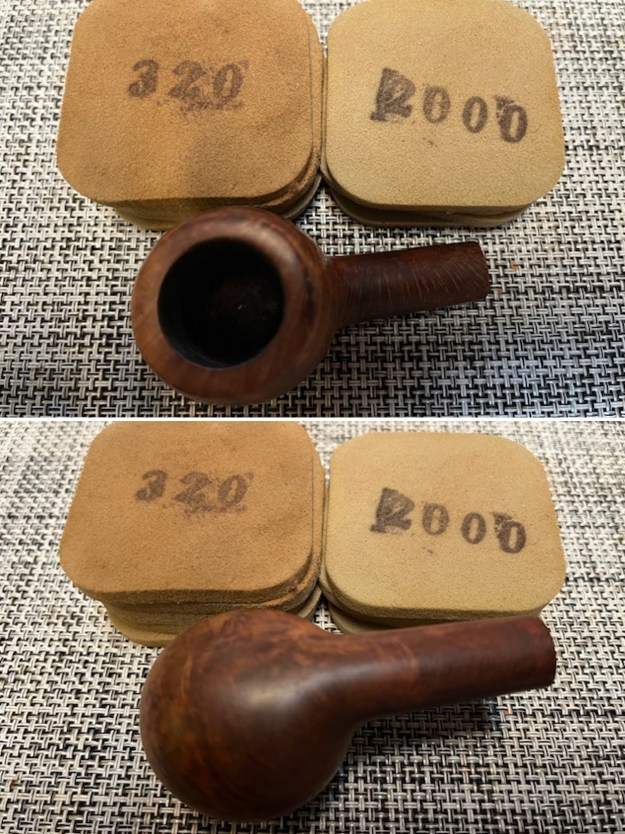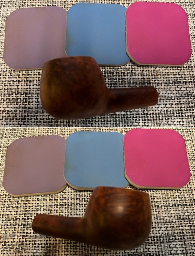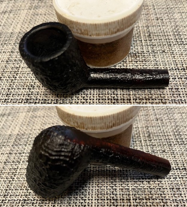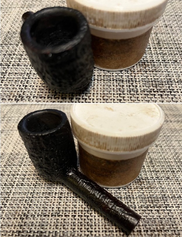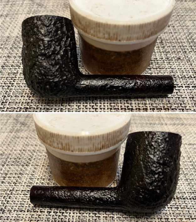 Off to my bench polisher! As usual, I used white diamond as my first compound, but instead of the regular conservator’s wax that I would use on sandblasted or rusticated pipes, I opted to use Halcyon II this time. It also gives a nice polish to the pipe, but slightly less shiny than normal – which is what I was aiming for.