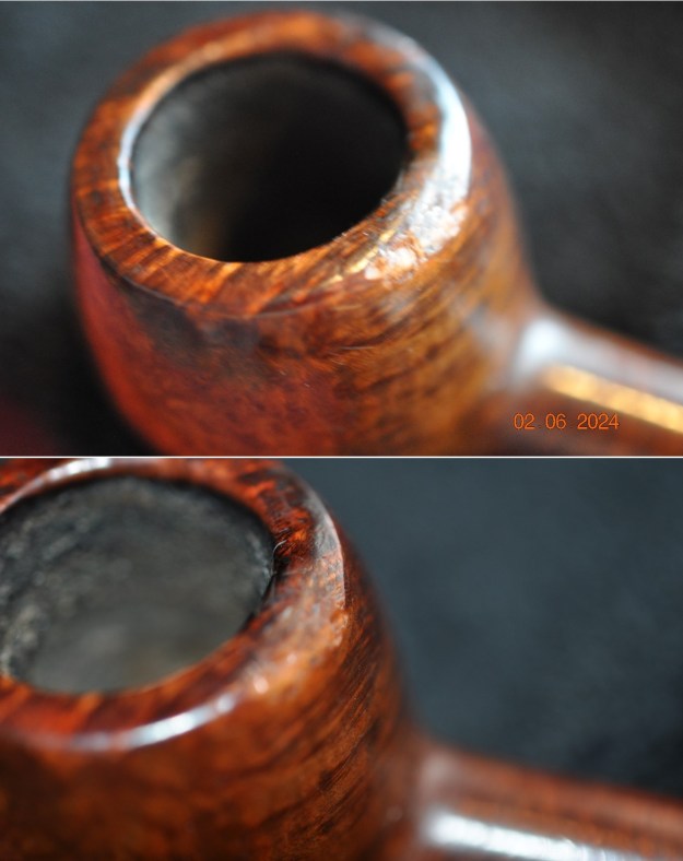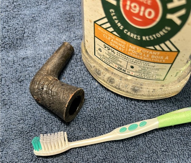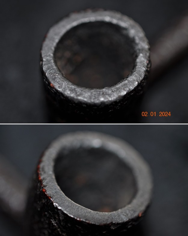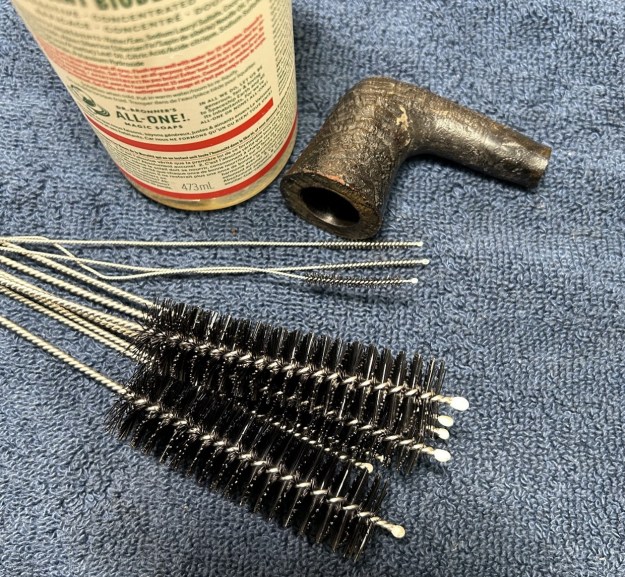 The stummel was surprisingly clean when I took hold of it. I did use a few cotton swabs and pipe, cleaners, along with isopropyl alcohol, but it didn’t take much to finish it. I followed that up with some Castile soap, and tube brushes to really scrub the insides. Came out beautifully. I’ve then took some Murphy’s, and a toothbrush and gently scrubbed the years of filth and oil, etc. off of the sandblast. It certainly looked much cleaner after that, albeit much more faded. A new coat of stain will be required, I think.