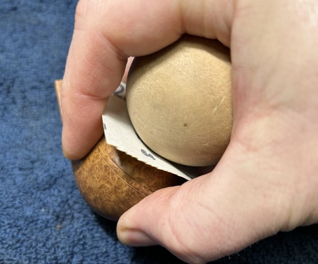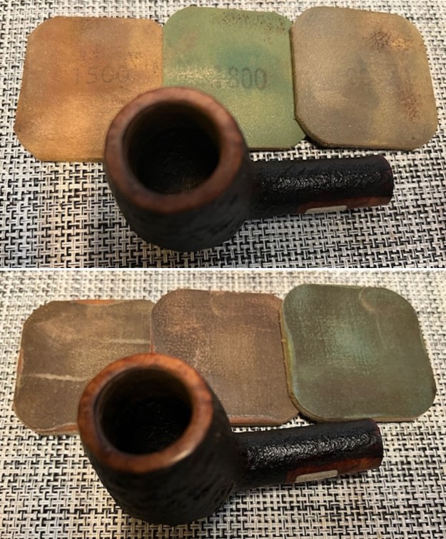I started my work on the pipe by polishing the briar with micromesh because it was in such good condition. I polished it with 1500-12000 grit micromesh sanding pads. I wiped the bowl down after each sanding pad with a damp cloth.
