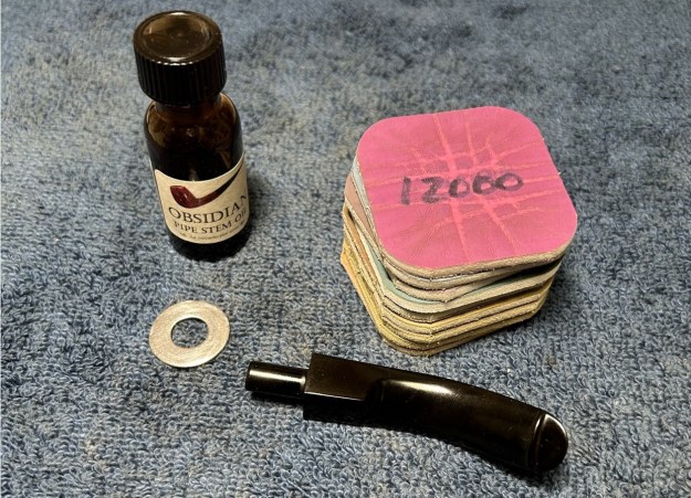 I polished it with Before & After Pipe Stem Polish – both Fine and Extra Fine. I gave it a coat of Obsidian Pipe Stem Oil. It works to protect the stem from oxidizing. I set it aside to dry.
