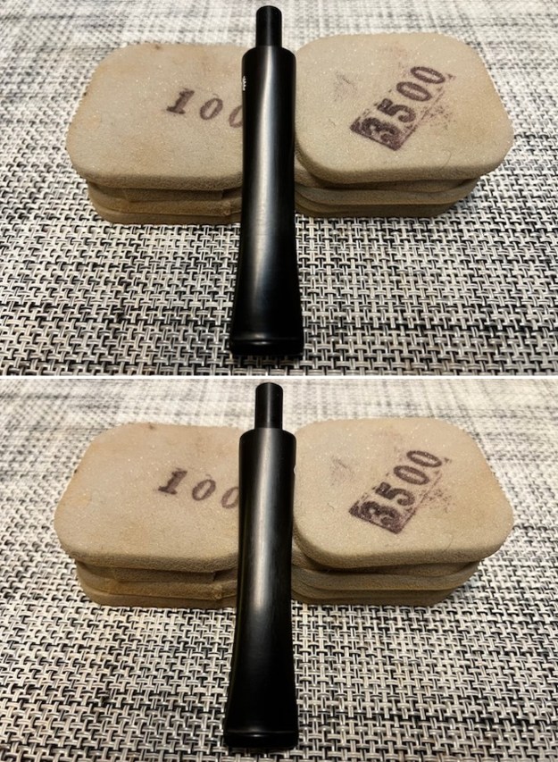 I polished the stem with micromesh sanding pads – dry sanding with 1500-12000 grit pads. I wiped the stem down after each sanding pad with Obsidian Oil.