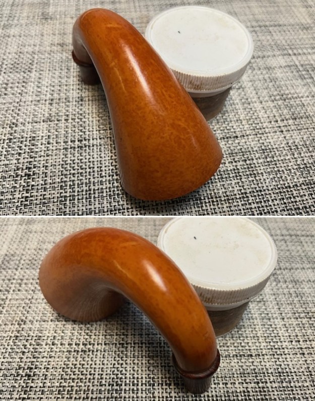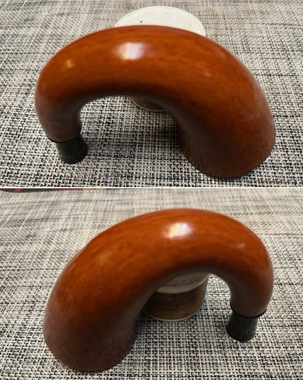 I have always been intrigued by the Stanwell Golden Contrast finish regardless of the pipes it has been applied to. The contrast of dark and light playing across the grain is beautiful. To me the lines and the elegance of the pipe are stunning and the contrast stain makes the lay of pipe with the grain gorgeous. The stain highlights the birdseye and the flame grain and makes them pop from the surface of the bowl and shank. I did a little digging because I wanted to confirm my guess/my suspicions about the designer. What I found out confirmed what I was thinking. There are two versions listed of the shape number 02. The first is a Freehand, oval bowl and stem, by Sixten Ivarsson. The second is a bent, egg-shaped bowl, sloping top, full mouthpiece. The second one is a clear description of the pipe in hand. Still uncertain of the designer but it is distinctively Danish. For a list of various Stanwell Shape numbers and who they are attributed to you can read this list compiled by leading Stanwell Collector, the late Bas Stevens on rebornpipes at: https://rebornpipes.com/2013/09/03/stanwell-shapes-compiled-by-bas-stevens/