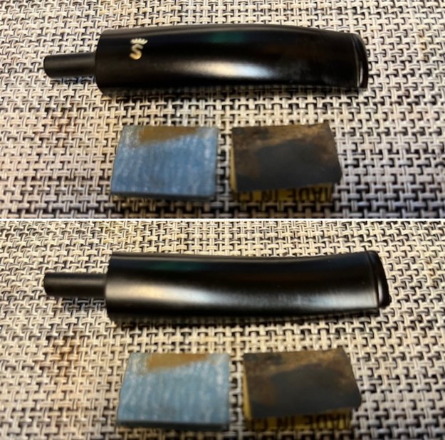 I polished it with Before & After Pipe Stem Polish – both Fine and Extra Fine. I gave it a coat of Obsidian Pipe Stem Oil. It works to protect the stem from oxidizing. I set it aside to dry.