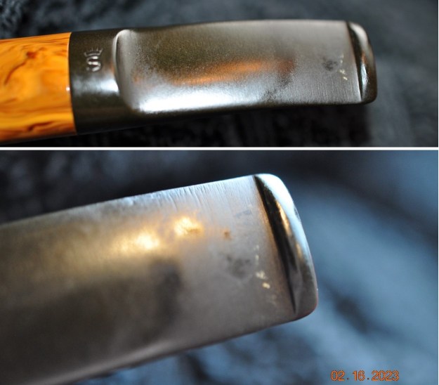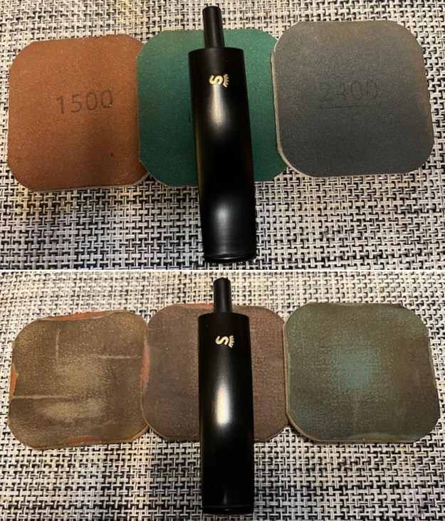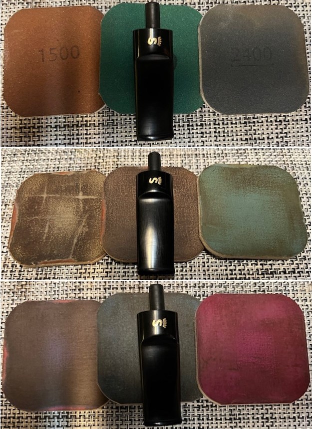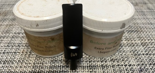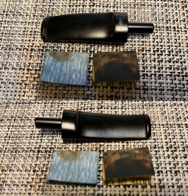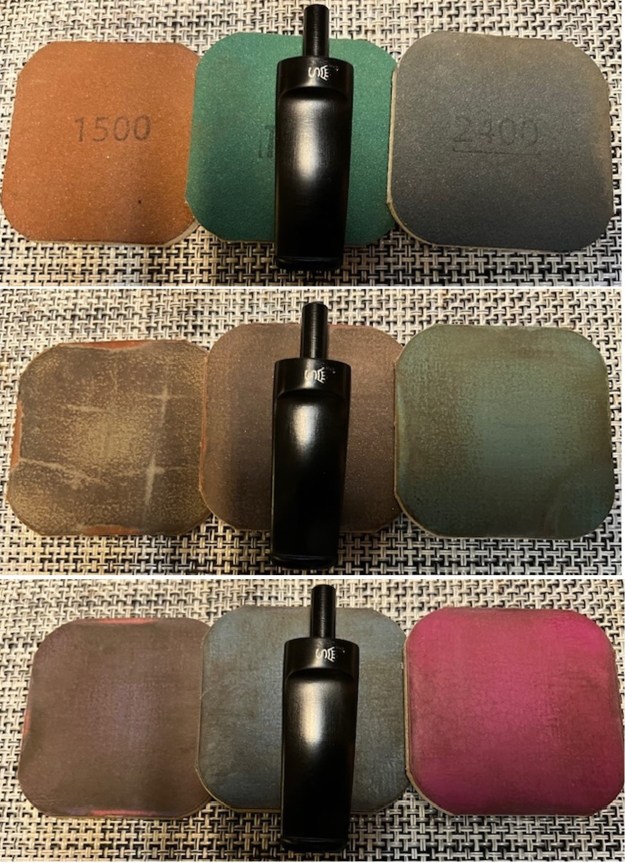 I polished light tooth marks and chatter out of the stem with micromesh sanding pads – dry sanding with 1500-12000 grit pads. I wiped the stem down after each sanding pad with Obsidian Oil.