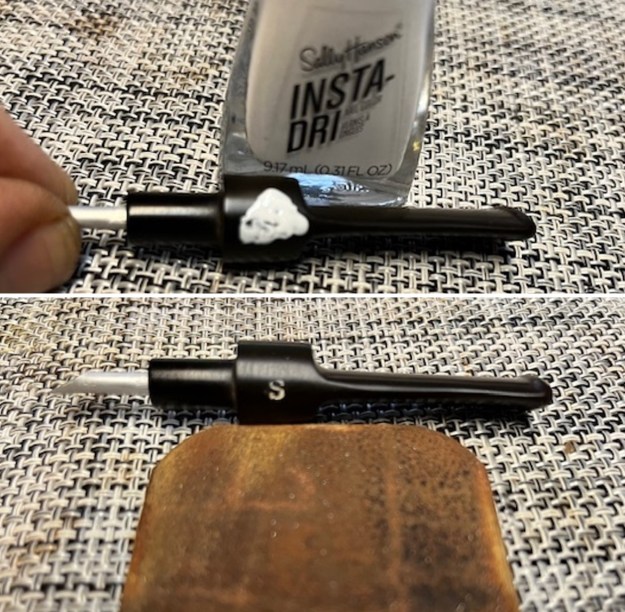 I polished it with micromesh sanding pads – dry sanding with 1500-12000 grit sanding pads. I wiped it down with a damp cloth to remove the dust on the surface.