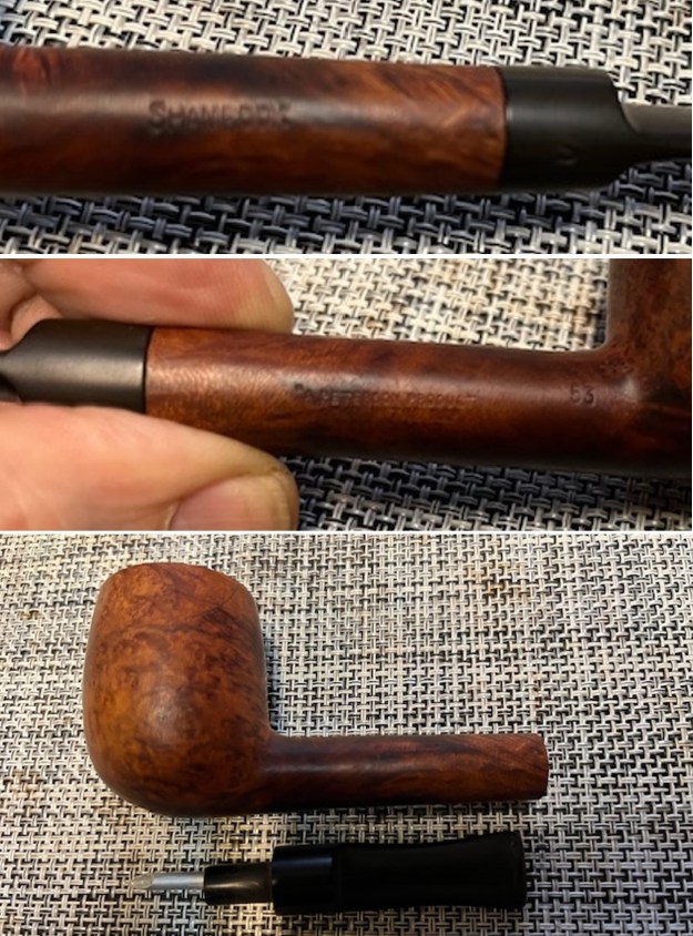 I took photos of the sides of the shank to show the stamping. The stamping is faint but readable in the photos below and is as noted above. I also removed the stem from the shank and took a photo of the parts of the pipe to give a clear picture of what I see here.