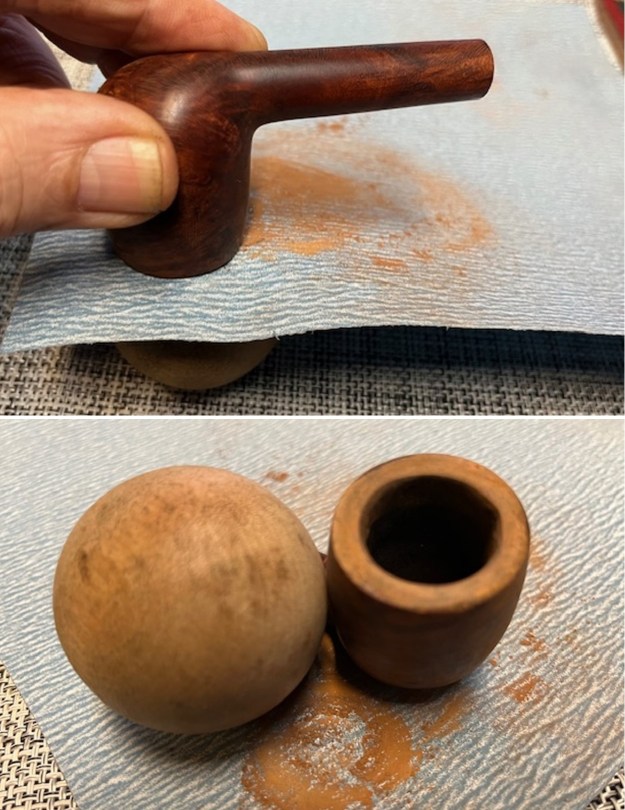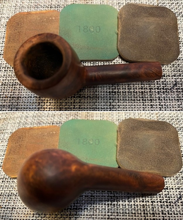 With that information at hand I turned to work on the pipe itself. I used a folded piece of 220 grit sandpaper to smooth out the inner edge and the rim top. It looked much better.