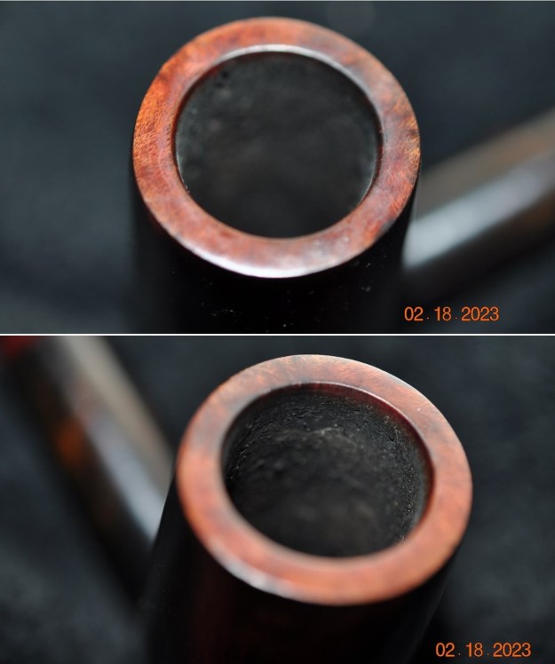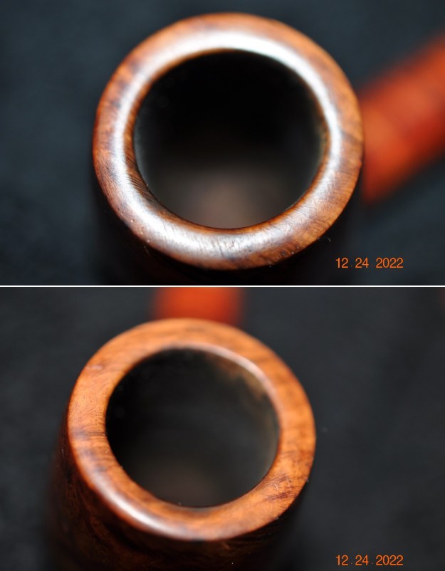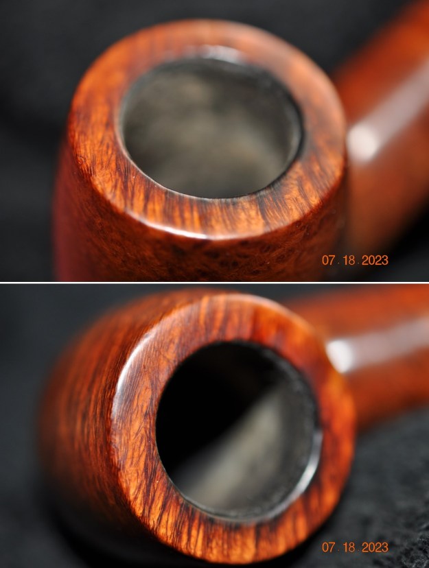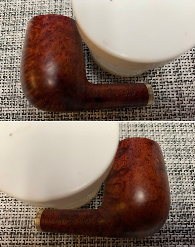 I used a Mahogany stain pen to touch up the rim top to match the rest of the bowl. The rim matches the colour in the rest of the bowl and shank perfectly.