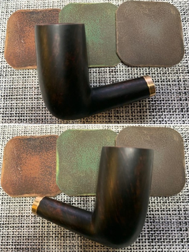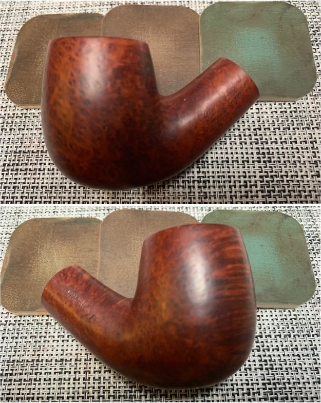 I do not fill any flaws in the briar, so the buyer will see exactly what is offered with nothing to hide. All pipes are finished with a buffed in coat of carnauba wax over the stain. Stains are all alcohol based and will not seal the wood, so won’t alter the smoking experience or the breathing qualities of the briar.