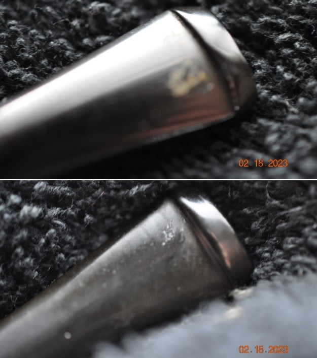 I also cleaned the nickel band with SoftScrub and that worked well. I also gave it a polish with a few of my finer MicroMesh pads – then finished with my jewellery cloth which added some much-needed pizzaz.
