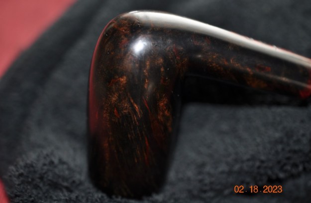 Jeff took some photos of the bowl sides and heel to show the grain showing through the black and red stain that was around this bowl. It is a nice looking pipe.